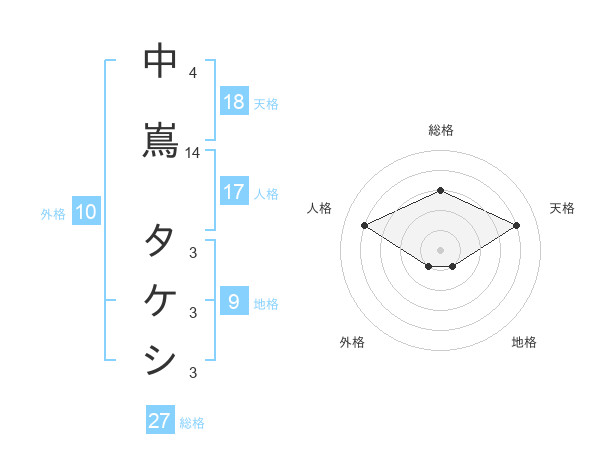 中嶌 タケシさんを姓名の画数から五運を鑑定