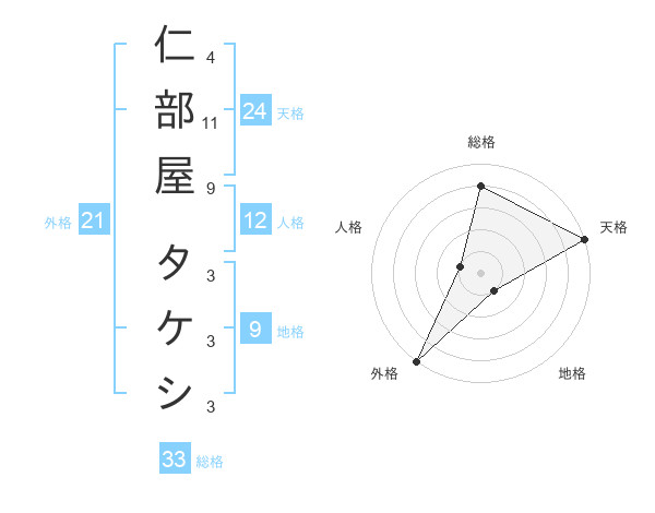 仁部屋 タケシさんを姓名の画数から五運を鑑定
