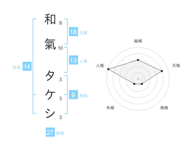 和氣 タケシさんを姓名の画数から五運を鑑定