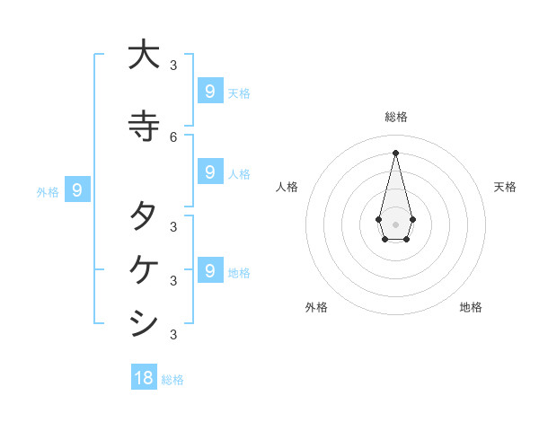 大寺 タケシさんを姓名の画数から五運を鑑定