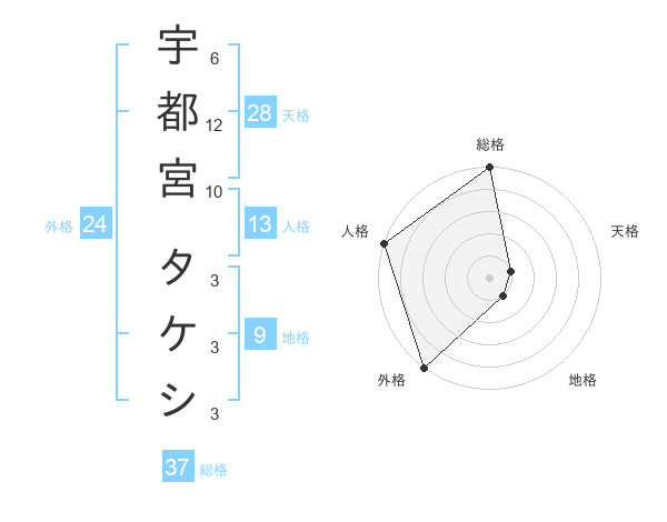 宇都宮 タケシさんを姓名の画数から五運を鑑定