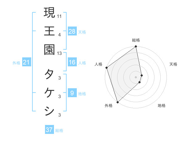 現王園 タケシさんを姓名の画数から五運を鑑定