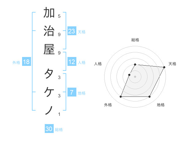 加治屋 タケノさんを姓名の画数から五運を鑑定