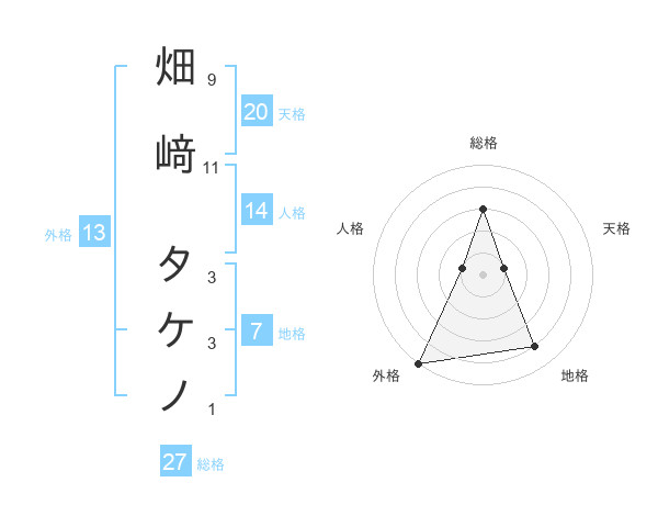 畑﨑 タケノさんを姓名の画数から五運を鑑定