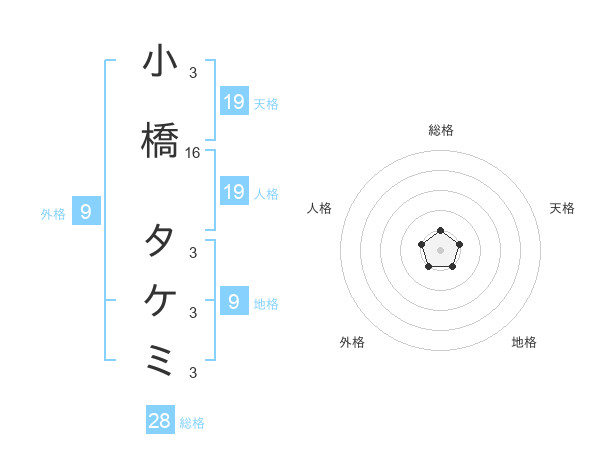 小橋 タケミさんを姓名の画数から五運を鑑定