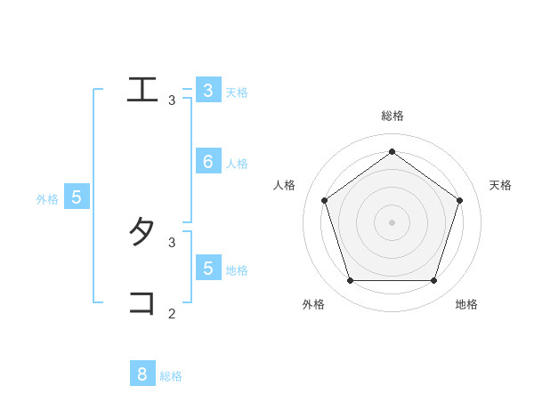 工 タコさんの総格は8画の4点!