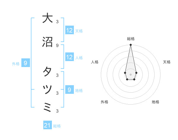 大沼 タツミさんを姓名の画数から五運を鑑定