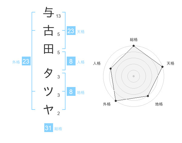 与古田 タツヤさんを姓名の画数から五運を鑑定