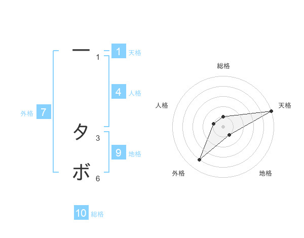 一 タボさんの総格は10画の1点!