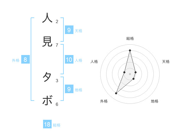 人見 タボさんの総格は18画の4点!