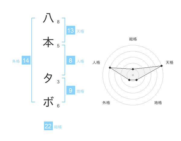 八本 タボさんの総格は22画の1点!