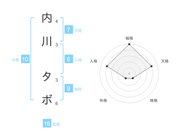 内川 タボさんの総格は16画の5点!