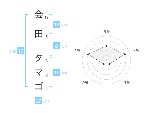 会田 タマゴさんを姓名の画数から五運を鑑定