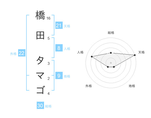 橋田 タマゴさんを姓名の画数から五運を鑑定