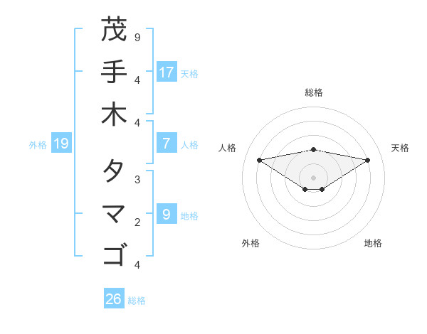 茂手木 タマゴさんを姓名の画数から五運を鑑定