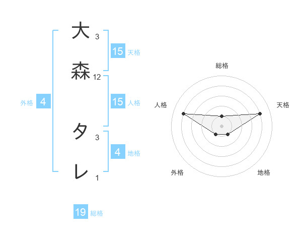 大森 タレさんの天格は15画の4点!