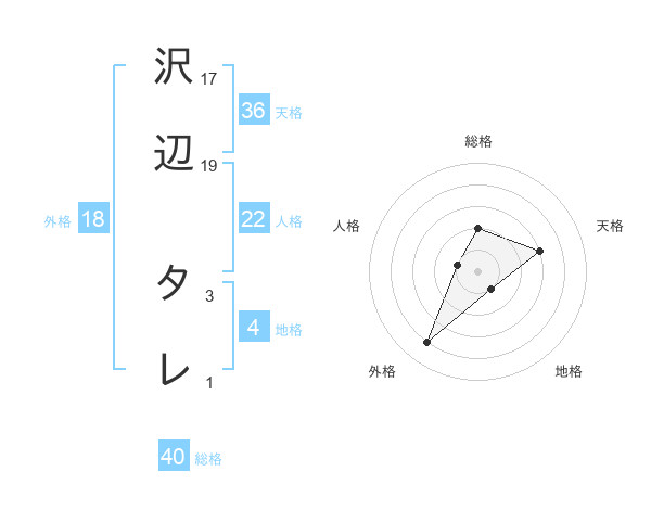 沢辺 タレさんの総格は40画の2点!