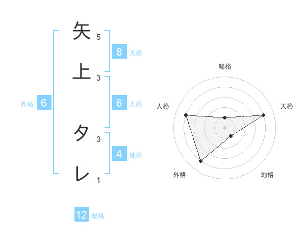 矢上 タレさんの総格は12画の1点!