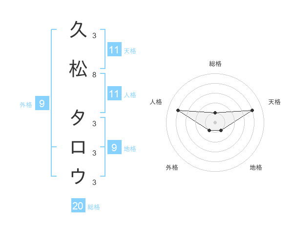 久松 タロウさんの総格は20画の1点!