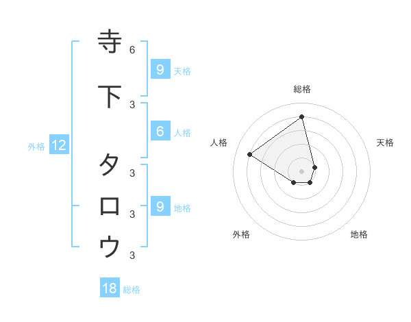 寺下 タロウさんの総格は18画の4点!
