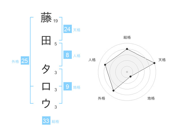 藤田 タロウさんを姓名の画数から五運を鑑定