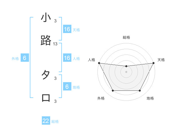 小路 タロさんの天格は16画の5点!