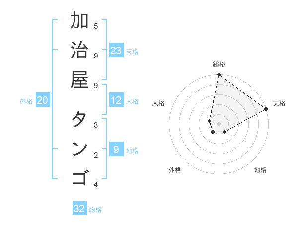加治屋 タンゴさんの天格は23画の5点