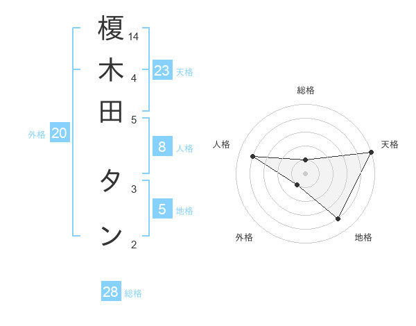榎木田 タンさんを姓名の画数から五運を鑑定