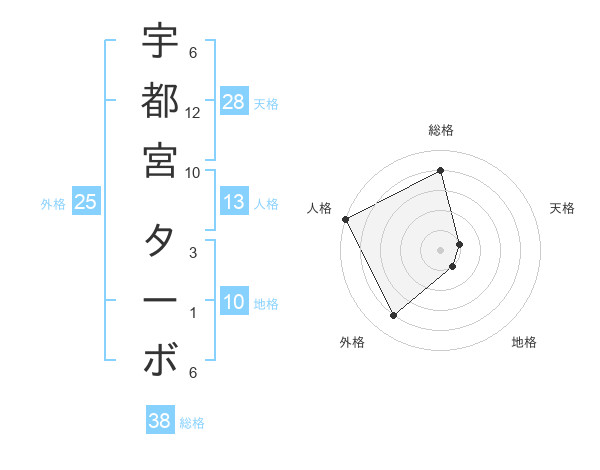 宇都宮 ターボさんを姓名の画数から五運を鑑定