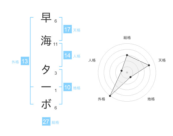 早海 ターボさんの天格は17画の4点!