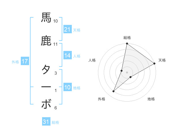 馬鹿 ターボさんを姓名の画数から五運を鑑定