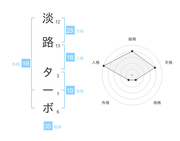 淡路 ターボさんの総格は35画の4点!