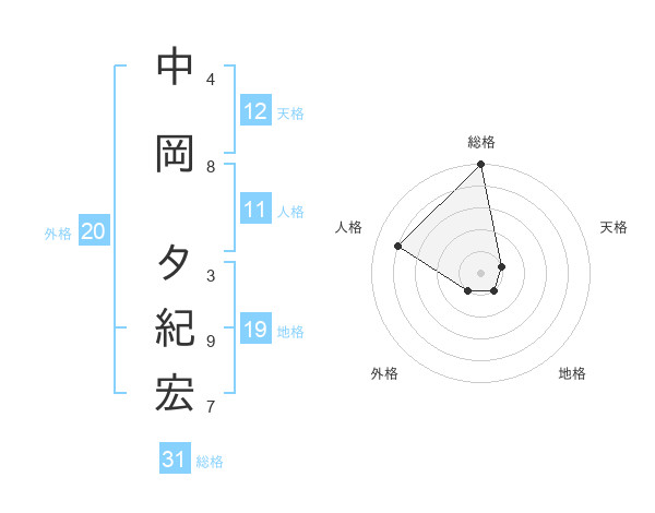 中岡 タ紀宏さんを姓名の画数から五運を鑑定