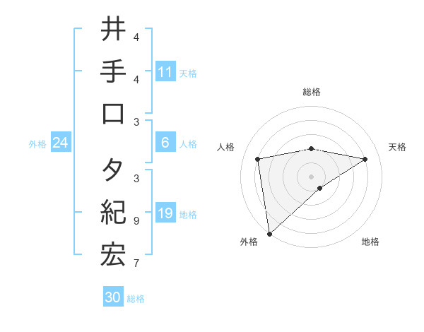 井手口 タ紀宏さんを姓名の画数から五運を鑑定