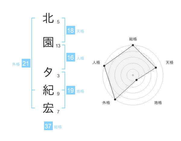 北園 タ紀宏さんの総格は37画の5点!
