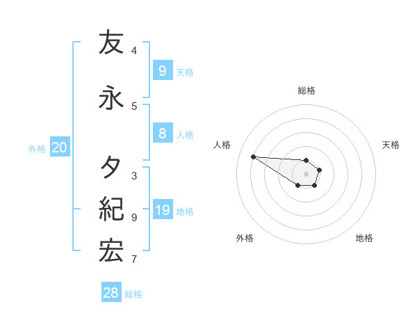 友永 タ紀宏さんを姓名の画数から五運を鑑定