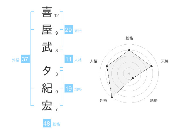 喜屋武 タ紀宏さんの外格は37画の5点!