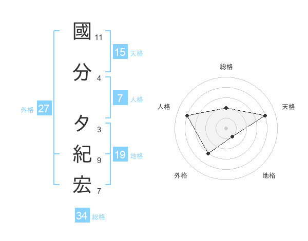 國分 タ紀宏さんを姓名の画数から五運を鑑定