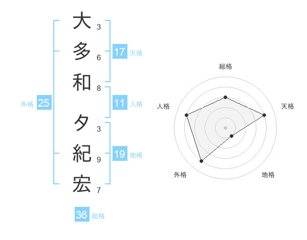 大多和 タ紀宏さんを姓名の画数から五運を鑑定