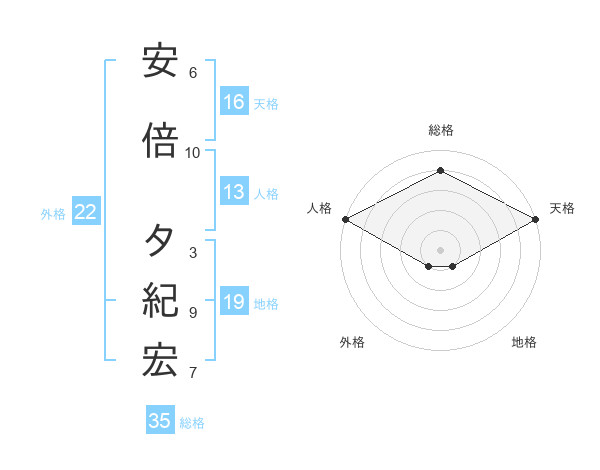 安倍 タ紀宏さんを姓名の画数から五運を鑑定
