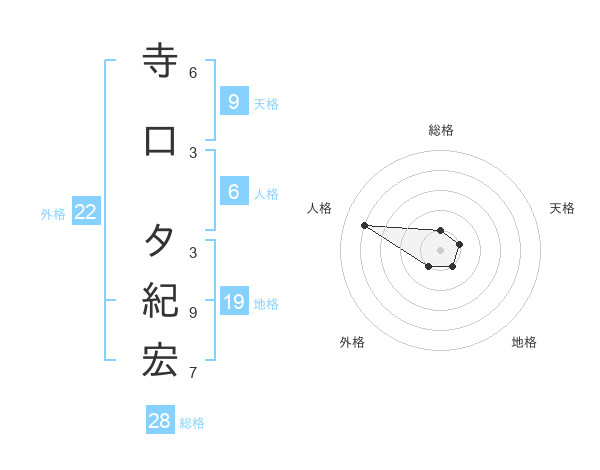 寺口 タ紀宏さんの総格は28画の1点!