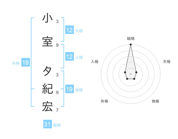 小室 タ紀宏さんを姓名の画数から五運を鑑定