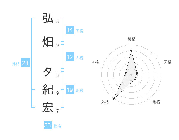弘畑 タ紀宏さんの総格は33画の4点!