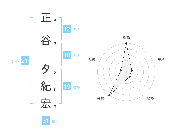 正谷 タ紀宏さんを姓名の画数から五運を鑑定
