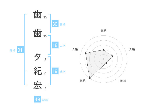 歯歯 タ紀宏さんを姓名の画数から五運を鑑定