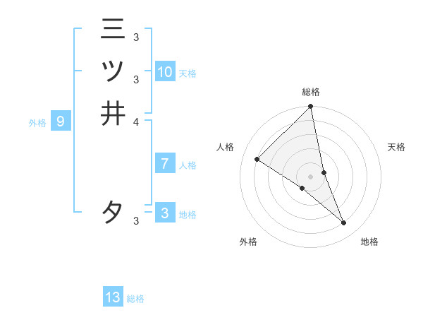 三ツ井 タさんの総格は13画の5点!