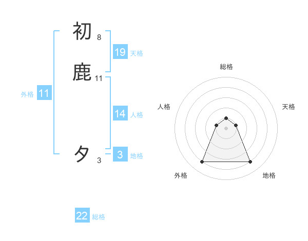 初鹿 タさんの総格は22画の1点!