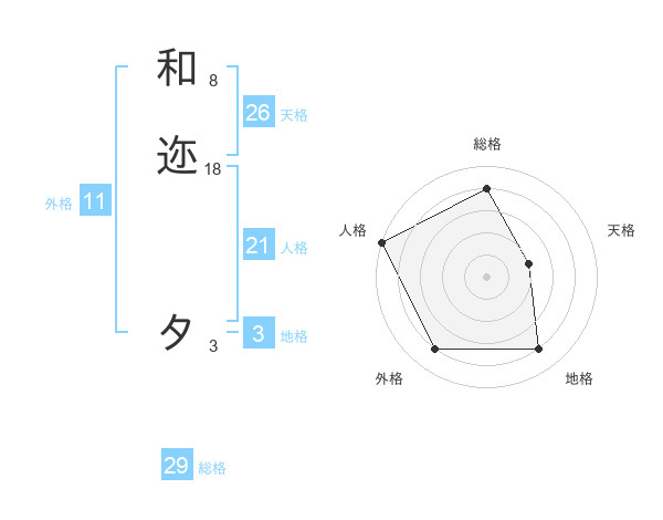 和迩 タさんの総格は29画の4点!