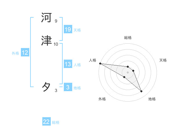 河津 タさんの総格は22画の1点!