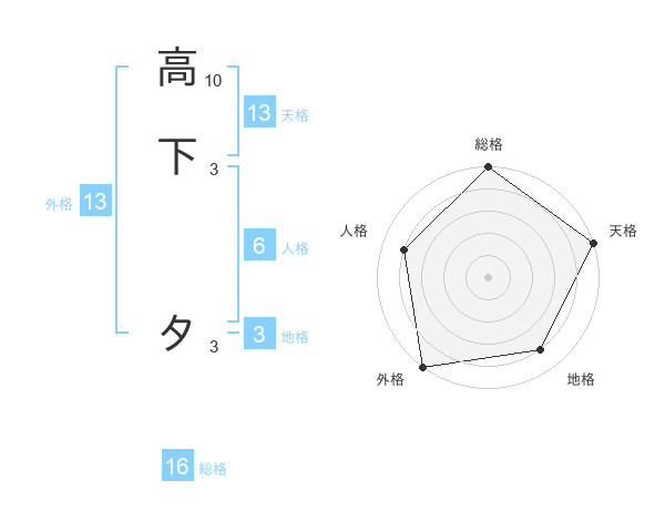 高下 タさんの外格は13画の5点!
